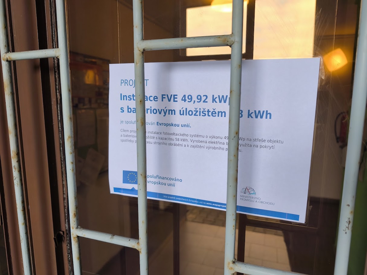 Firmě PALÍRNA-KOVO, s.r.o., Bílovec byla dne 20.06.2025 předána zhotovitelem firmou Rauchenberg s.r.o., Hodonín do provozu realizovaná fotovoltaická elektrárna. Fotovoltaický systém pozůstává ze 104 ks FE modulů typ JKM480M-480 Wp umístěných na rovné střeše výrobní haly. Instalovaný výkon FVE je 49,92 kWp. Moduly jsou upevněny na ocelové konstrukci pod sklonem 10°. Výkon je vyveden z rozvaděče RFVE kabelem do stávajícího okruhového rozvaděče.